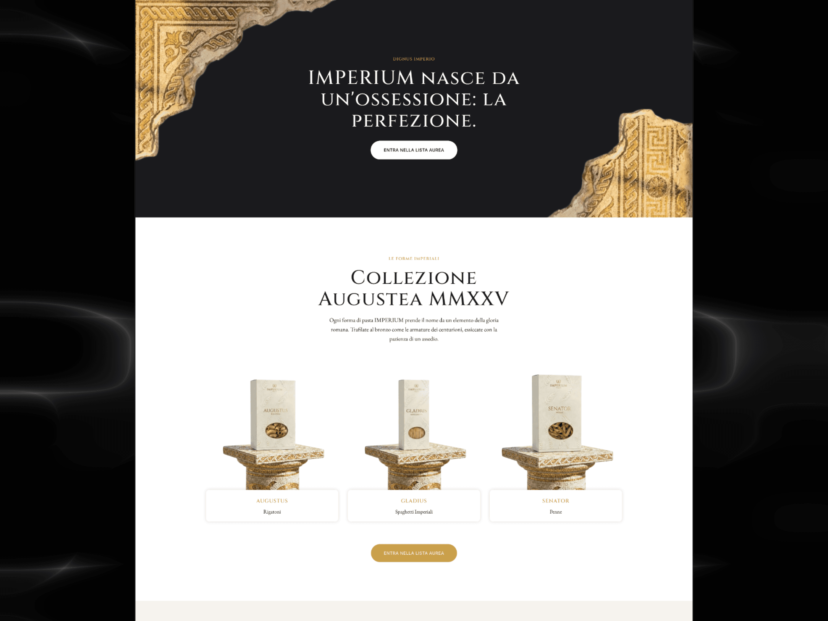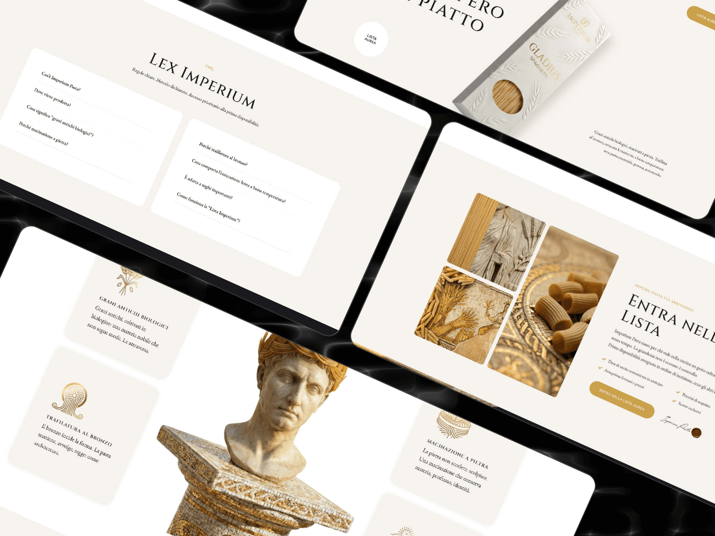 Design and development of an experimental landing page created to validate the market positioning of a new artisanal pasta brand. The project merges "Roman Heritage" aesthetics with a clean, modern design system, focusing on testing premium market appeal through high-end visual storytelling and strategic lead generation.