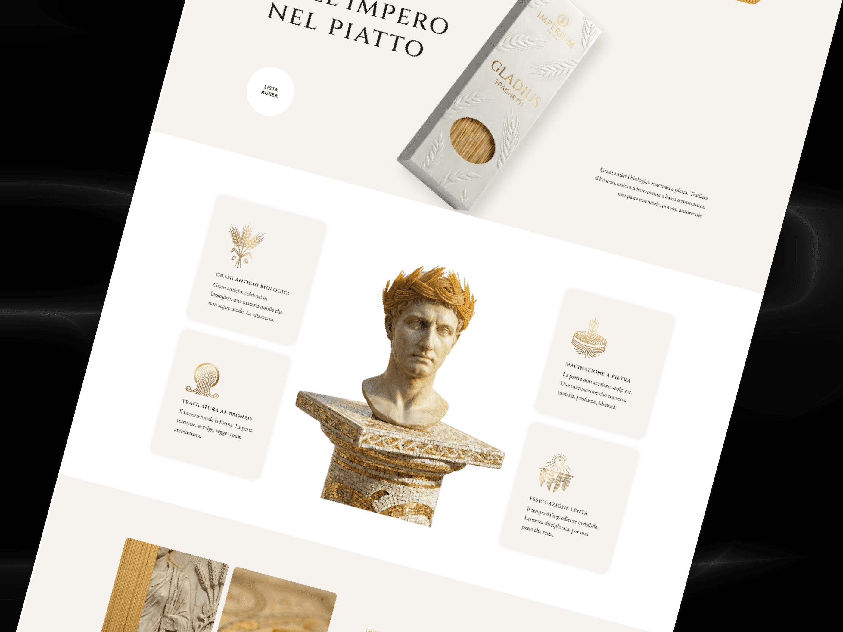 The main challenge lay in balancing classical Roman iconography with modern design to avoid a "tourist-trap" or dated aesthetic. From a UX perspective, we had to convey the product’s excellence—such as its unique texture and grain origin—purely through visual storytelling, without the support of a physical product. Additionally, strict time constraints required an extremely lightweight and high-performance web experience capable of rapidly converting social media traffic to validate marketing KPIs.